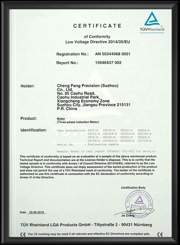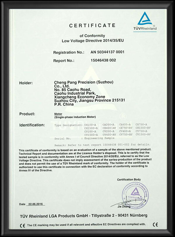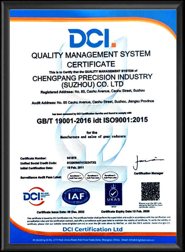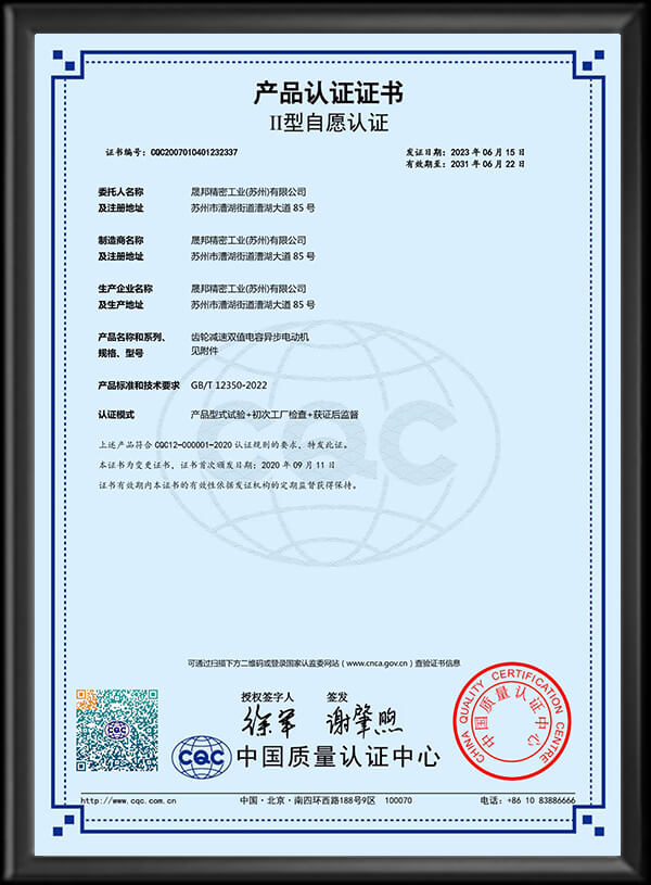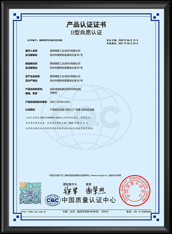 公司以“CPG”為注冊商標,并通過ISO9001、ISO14001、ISO45001、CE以及CCC等相關認證。減速電機特性依據國際電工委員會IEC-34及國標CNS-10919標準制造,另設東莞服務網點:東莞市晟邦機械有限公司。